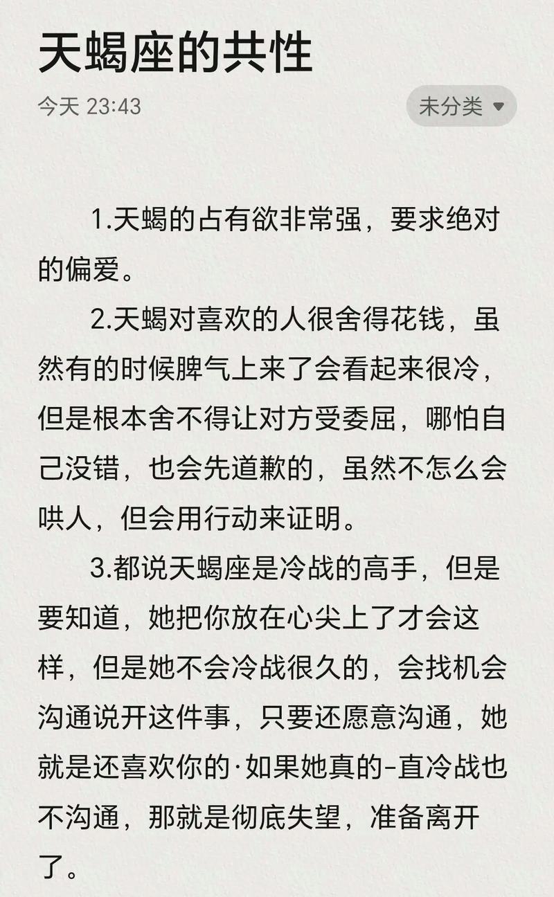 3. 控制欲与信任问题:天蝎座在婚姻中往往表现出强烈的控制欲和占有欲,他们希望掌握伴侣的一切。在无性婚姻中,这种控制欲可能会加剧,导致伴侣感到被束缚和缺乏自由,从而引发信任危机和矛盾。