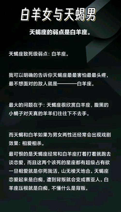 白羊座和天蝎座的爱情是一段充满激情和挑战的旅程。虽然他们之间有明显的性格差异,但这些差异也是他们互相吸引的原因。通过相互理解、沟通和共同成长,这对夫妇可以克服困难,建立稳定而深刻的关系。我希望这篇文章能为那些在这段关系中挣扎或寻求指导的人提供有价值的洞察力,并帮助他们在爱的道路上走得更远。