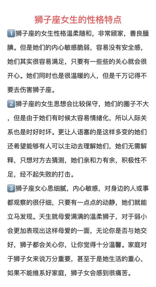 狮子座的特质并非一成不变,它只是一个人性格的潜在底色。后天环境,特别是童年经历,对性格的塑造起着至关重要的作用。一个狮子座女性,如果从小生活在一个压抑、否定、缺乏安全感的环境中,她的自信心很可能被扼杀,导致性格中出现懦弱的倾向。