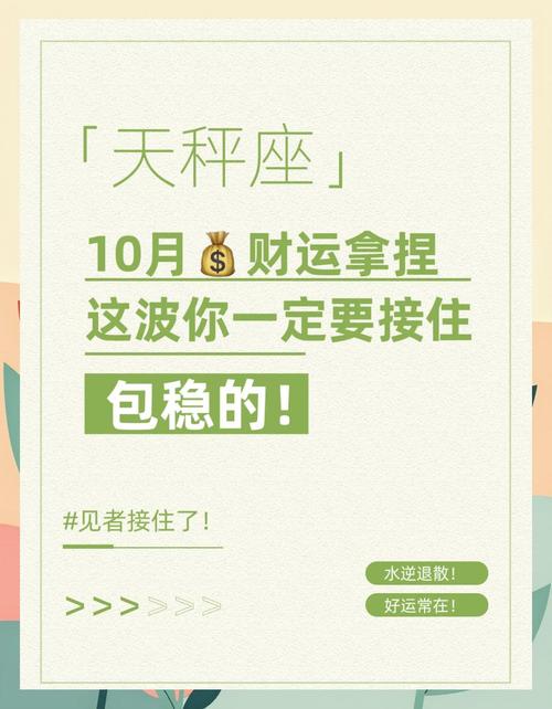 金秋十月,空气中弥漫着收获的香气,落叶翩翩,仿佛在预示着一些旧事将成过往,新的机遇即将到来。对于追求平衡与和谐的天秤座而言,这个十月在财运方面将会呈现怎样的图景呢?是风生水起,轻松进账?还是暗流涌动,需要谨慎应对?