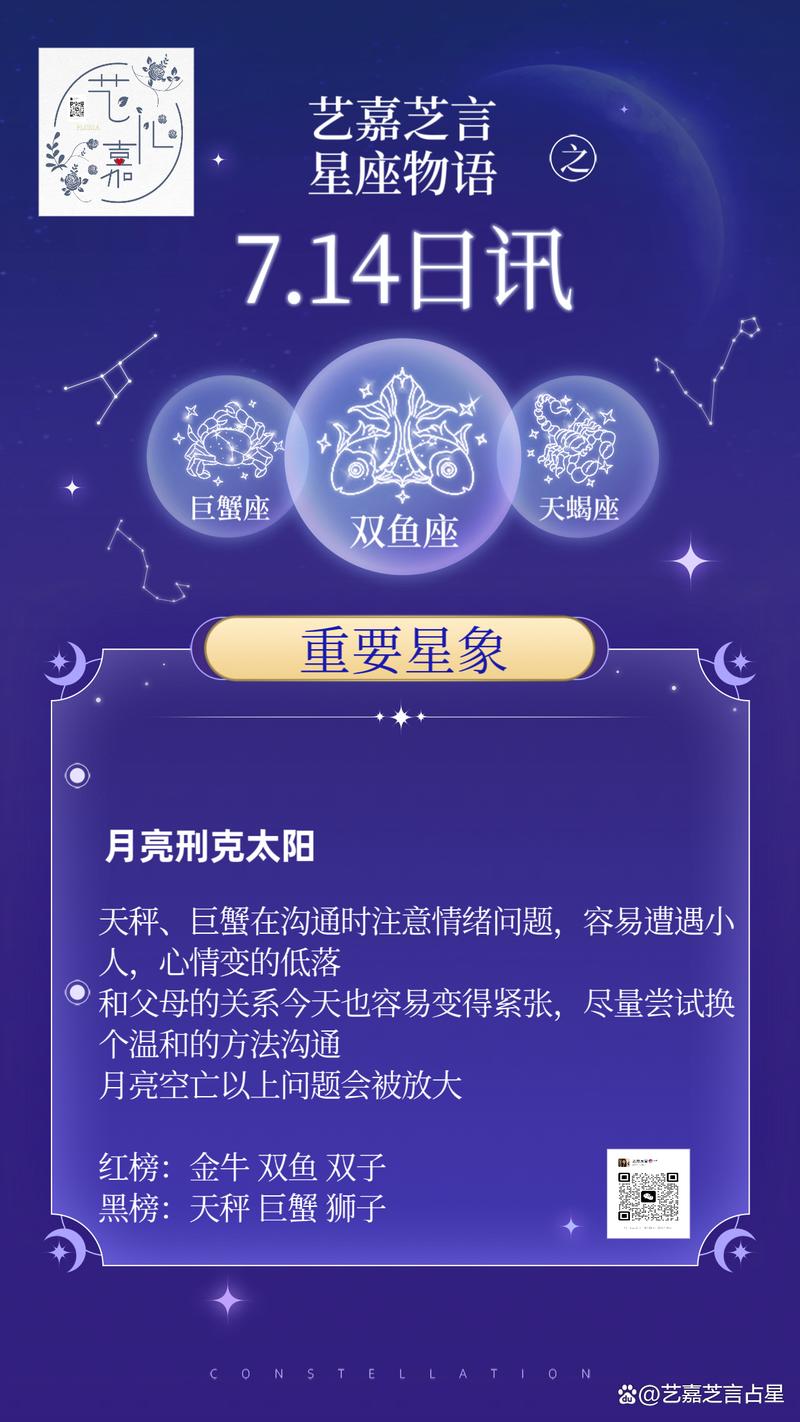7月14日的星座是巨蟹座,这一星座以其情感的丰富性和深度着称。巨蟹座的人善于关心他人,并在家庭和友情中扮演着重要的角色。他们的直觉和创造力让他们在多个领域都能取得成功。