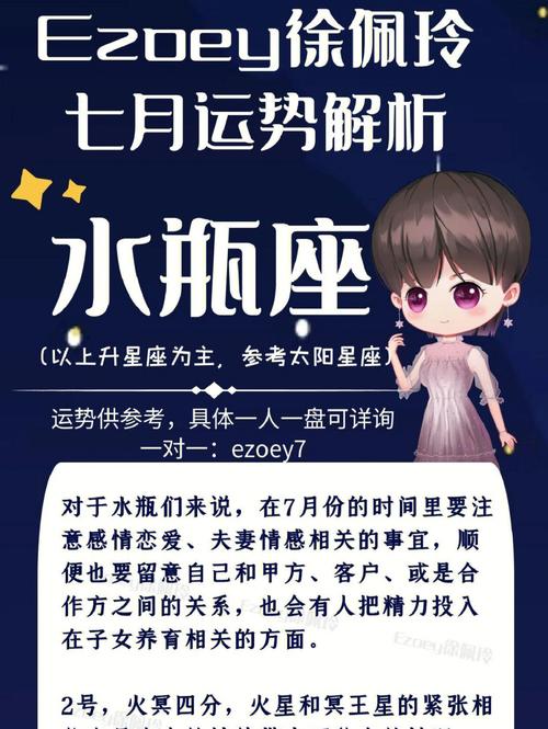 7 月亮对水瓶座来说是一个充满变化和机遇的月份。本月将重点关注人际关系、沟通和职业发展。行星的安排有利于团队合作、社交互动和表达你的想法。