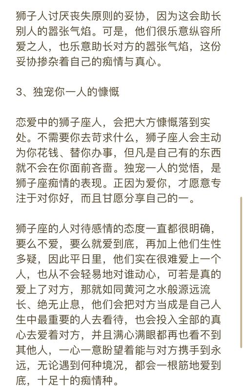 热情的表达: 狮子座的爱情是热烈的,充满激情的。他们喜欢用直接的方式表达自己的爱意,无论是甜言蜜语,还是浪漫的行动,都充满了真诚和热情。 8月22日的狮子座,在热情中又融入了一丝细腻和体贴,他们会更加注重细节,用更温柔的方式表达自己的爱意。